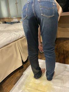 持参してきたデニムを履いての