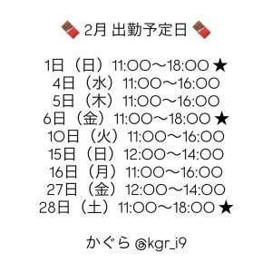 そして2月の出勤予定日を更新しました!