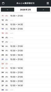 スケジュールは変更される場合があります。ご注意ください!最新のスケジュールはお店HPのものです。