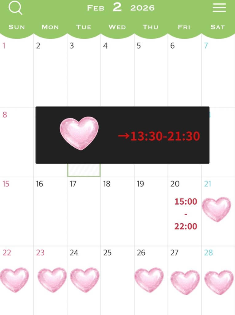 こちら現時点での2月のシフトです!