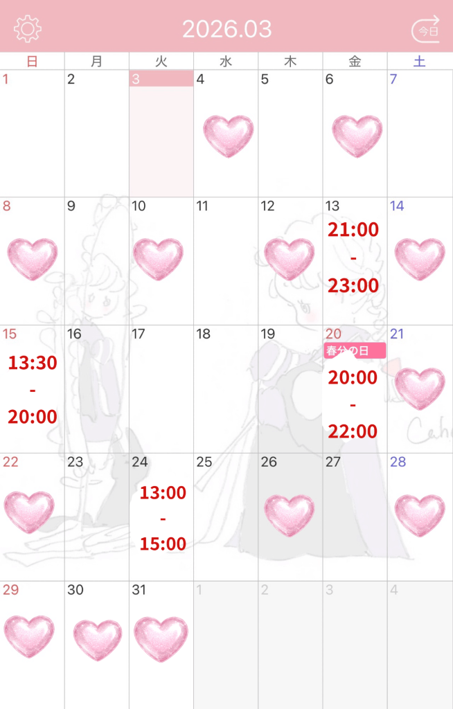 こちら現時点での3月のシフトです!
