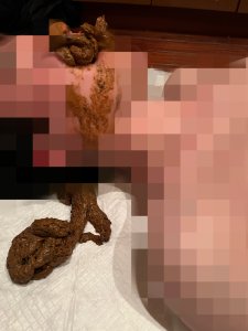 口から溢れる大量ゆるめうんこでよろこんでくれたー!