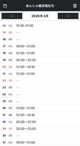 スケジュールは変更される場合があります。ご注意ください!最新のスケジュールはお店HPのものです。